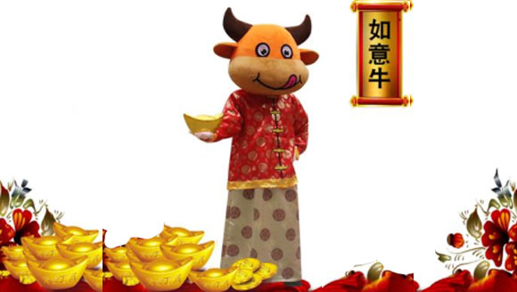 哞哞说哈喽,新年好彩头,与穿着牛年卡通服的演员互动,有机 会通过互动小游戏得到小红包(糖果)哦。