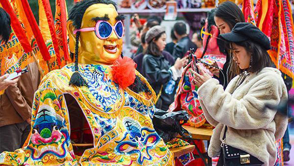 在台湾,哪吒三太子是儿童和司机的守护神,是可爱又顽皮的童 神。因此,三太子会骑摩托、滑滑板,甚至结合热门音乐成为融合传 统和创新的电音三太子。今年春节,电音三太子与网络流行音乐碰撞 出新火花,为你演绎新国潮
