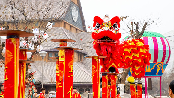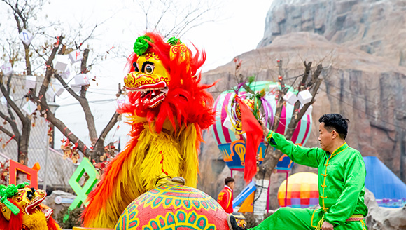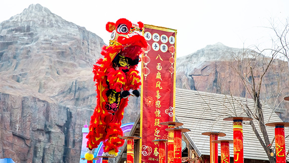 活泼灵动的南狮为你拜年,洛川蹩鼓为你敲响新年的节奏,巨龙 起舞翩若惊鸿